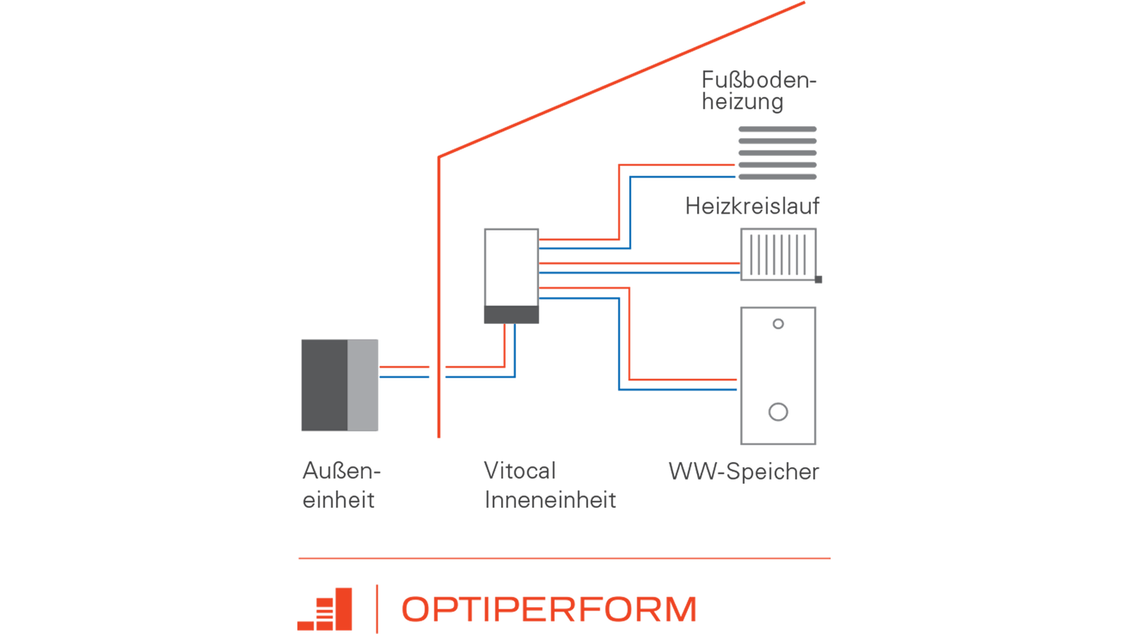 Viessmann’s advanced heat pumps work with a patented hydraulic system. Thanks to the Hydro AutoControl® system, the heat pump operates reliably and with maximum efficiency over its entire service life. The unique design not only ensures that your contractor can install a heat pump with OptiPerform much faster and therefore more cost-effective. It also takes up much less space, as it is 60 percent smaller than similar systems.
