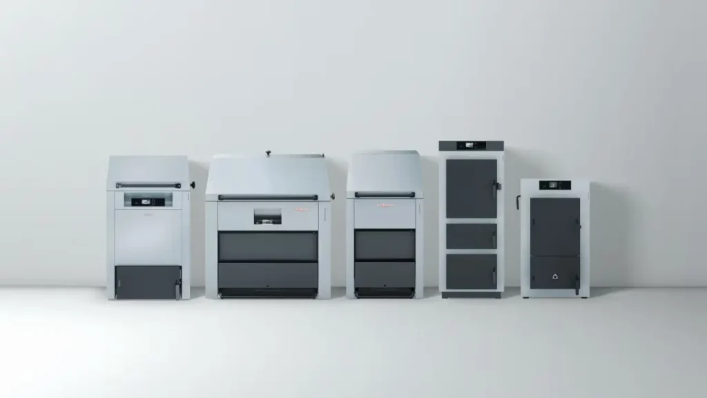 The range of renewable energy systems includes solar thermal systems for hot water heating, backup central heating and cooling, as well as specialized boilers for logs, wood chips, and pellets. There are also hybrid units, heat pumps, and ice storage systems that utilize energy from the ground, groundwater, or ambient air, as well as photovoltaic and ventilation systems.